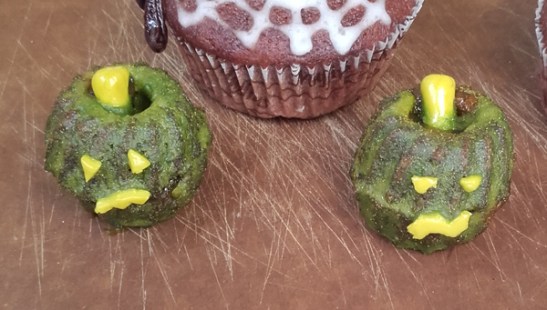 Tipp: Geben Sie die Muffinmasse in kleine Gugelhupfformen (vorher schön einfetten und stauben). Kleben Sie mit Hilfe der Marmelade jeweils zwei Gugelhupf so zusammen, dass sie wie ein Kürbis aussehen. Färben Sie den Zuckerguss mit ein wenig Lebensmittelfarbe ein und übergießen Sie die Gugelhupfkürbisse damit ganz vorsichtig. Drappieren Sie noch einen Stängel, Augen und Mund sodass die Gugelhupf aussehen wie Halloweenkürbisse.